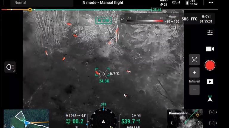 We provide fast, ethical drone-based heat detection to locate downed deer after a harvest. Our thermal-equipped drone helps pinpoint deer quickly, even in thick cover or low-light conditions. Don't let your downed harvest go to waste!