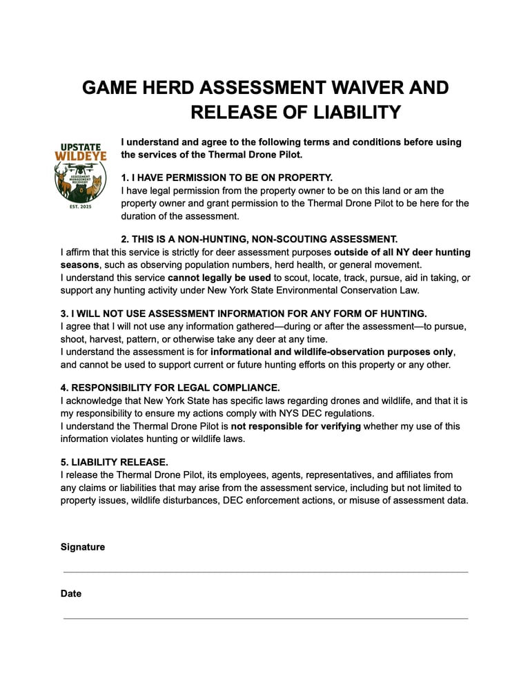 Upstate WildEye operates within all FAA Part 107 regulations and New York State DEC laws.